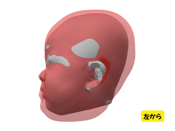 灰色の部分が治療前、赤色の部分が治療後の形になります。