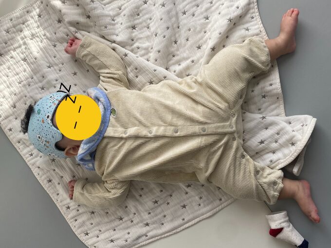 息子は生後4ヶ月から生後8ヶ月までの約4ヶ月間、ヘルメット治療を行いました。