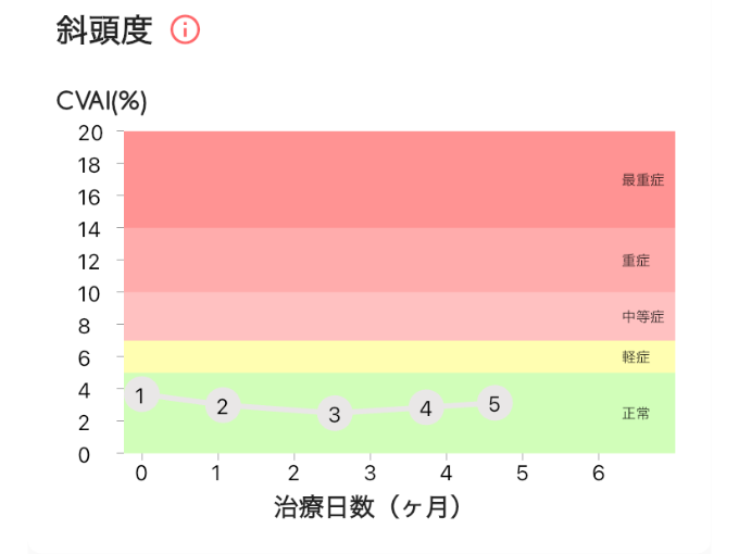 - 斜頭度(左右の歪み):もともと正常範囲だったが、さらに歪みは減少