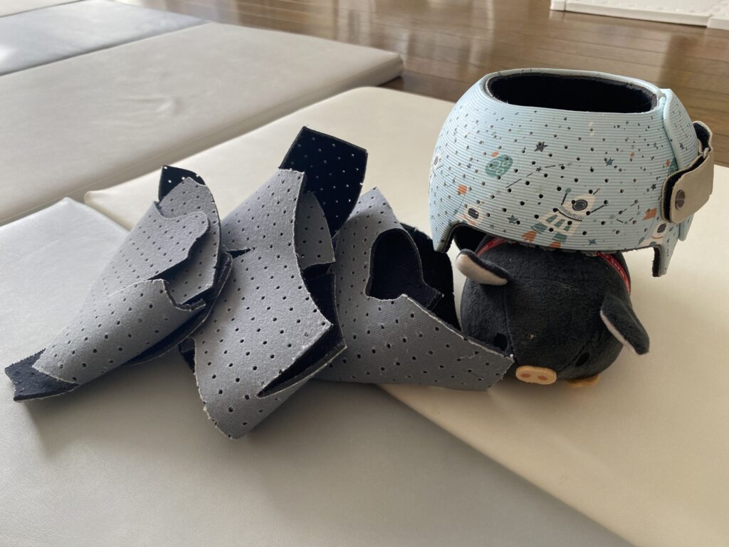 治療後半はヘルメットがきつくなった影響か、装着するときに少し嫌がることはありましたが、つけてしまえば気にせず過ごしていました。