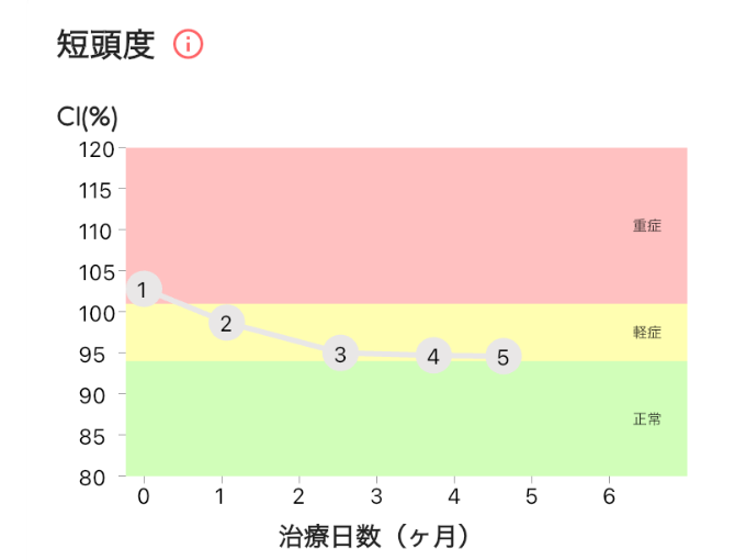 - 短頭度(絶壁):重度→軽度に改善