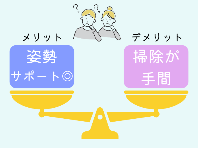 2つ目は、良い姿勢で座れることを重視するか掃除のしやすさを重視するかというポイントです。