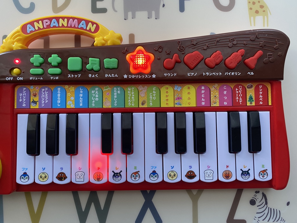 我が家が購入したアンパンマンのキーボードは、音や光に興味が出てきたお子さんにとって、はじめてのキーボードとして取り入れやすいおもちゃです。
