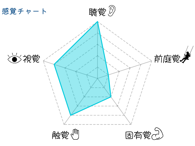 このチャートは、おもちゃを通して「どの感覚を体験しやすいか」を整理した目安です。
